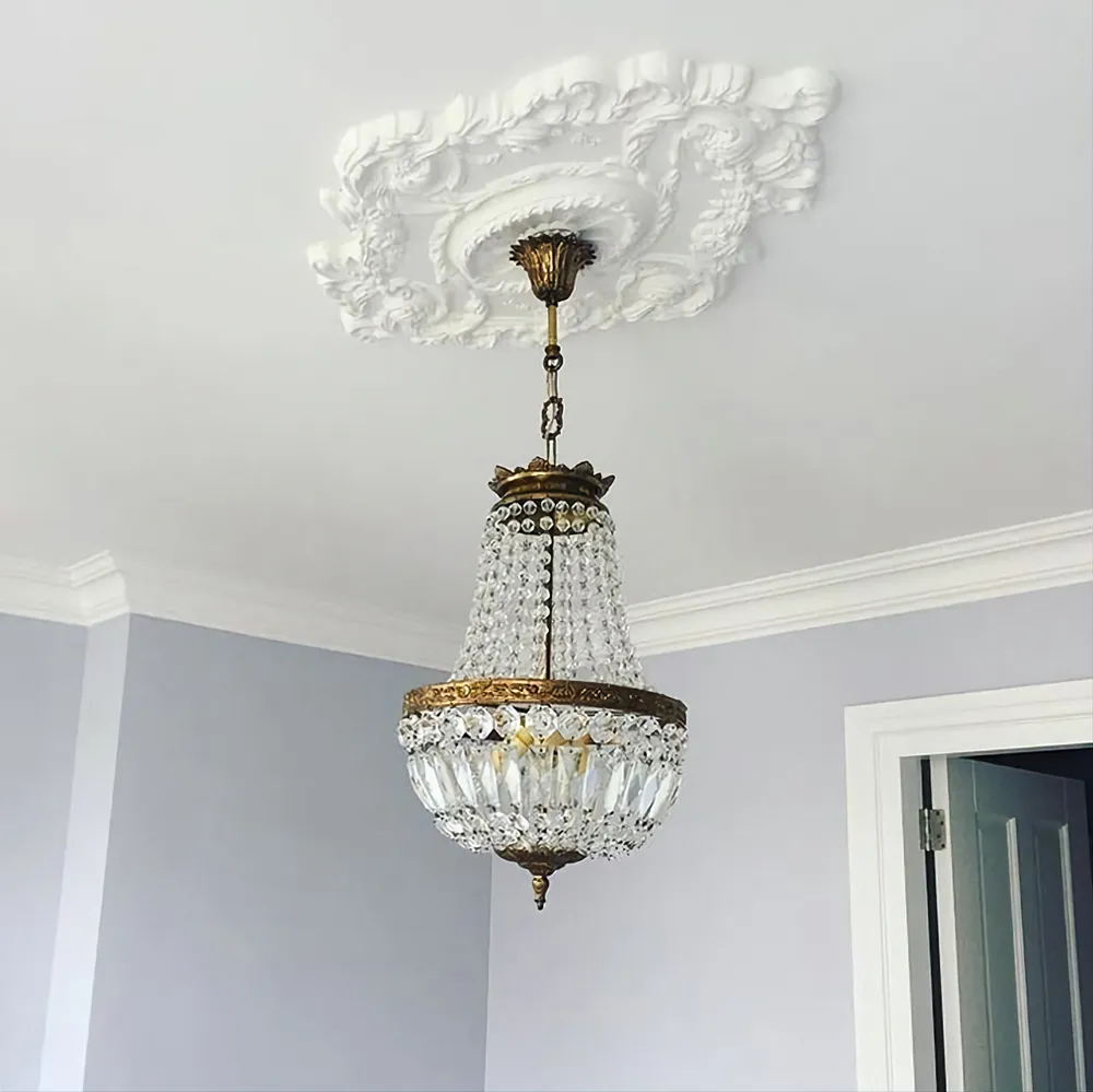מנורת תליה עתיקה שילוב ברונזה וקריסטל
