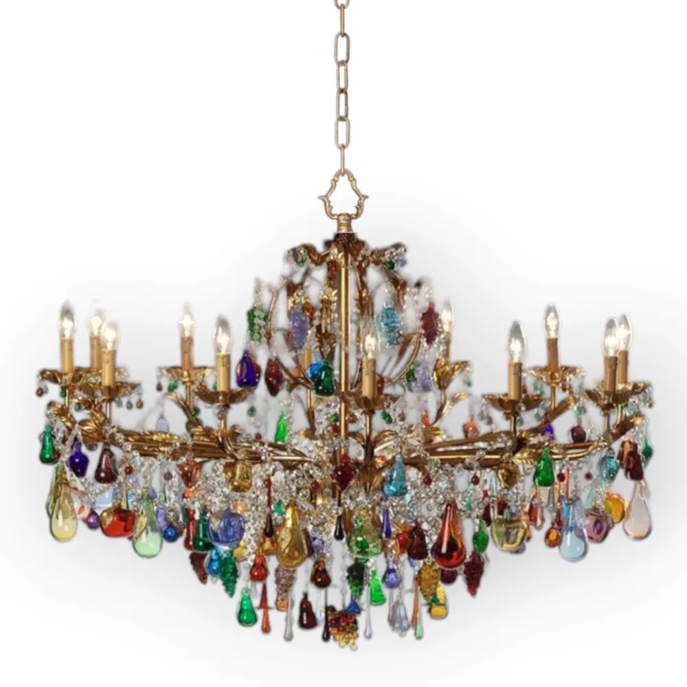 שנדליר יציקת ברונזה עם אבנים קריסטל צבעוני